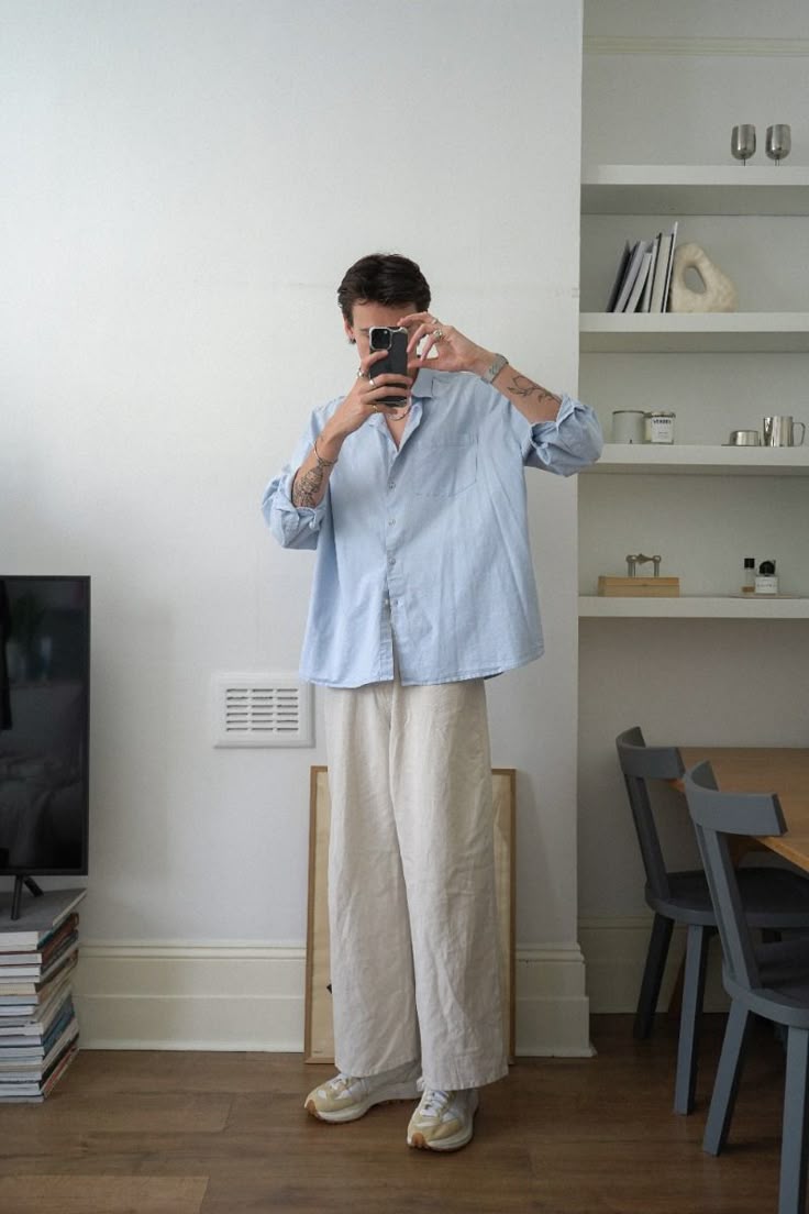 Tránh những chiếc quần quá bó sát, thay vào đó, quần dáng straight hoặc relaxed fit sẽ giúp cân đối với phần trên cơ thể. Quần quá ôm sẽ làm lộ rõ đôi chân gầy, trong khi quần quá rộng sẽ khiến bạn trông luộm thuộm.